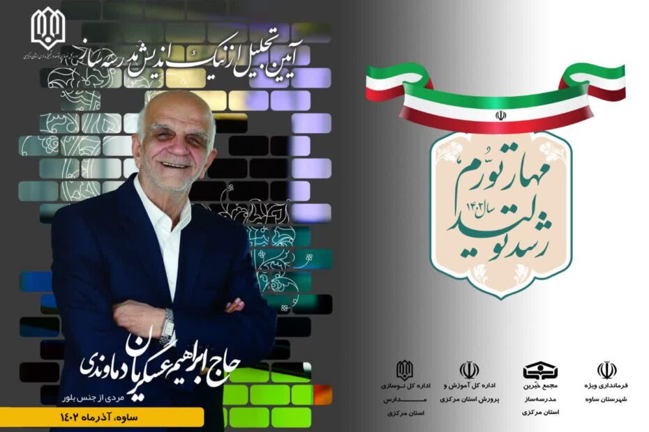 آیین تجلیل از نیک اندیش گرامی آقای حاج ابراهیم عسگریان دماوندی در روز سه شنبه مورخ 1402/9/28 در شهرستان ساوه جنب دریاچه تفریحی ساوه ،… ادامه »آیین تجلیل از خیر مدرسه ساز حاج ابراهیم عسگریان دماوندی